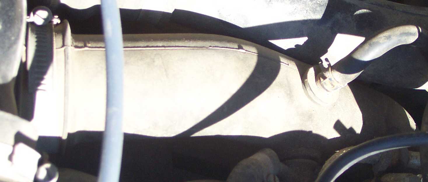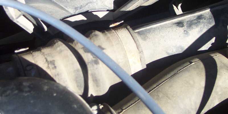 Here is where the air leaves the intercooler. I'm not sure how many bends are present here, because I don't know the flow pattern of the stock intercooler. At the bare minimum, you can see one, so I'll call it number 7.